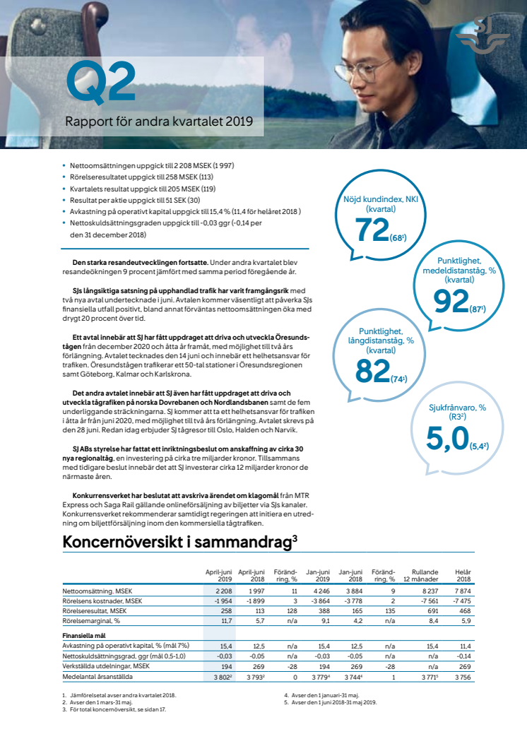 Efterfrågan på resandet med SJ fortsätter att öka. Den starka resandeökningen innebär att SJ i dag levererar ett starkt rörelseresultat för årets andra kvartal; 258 MSEK (113).