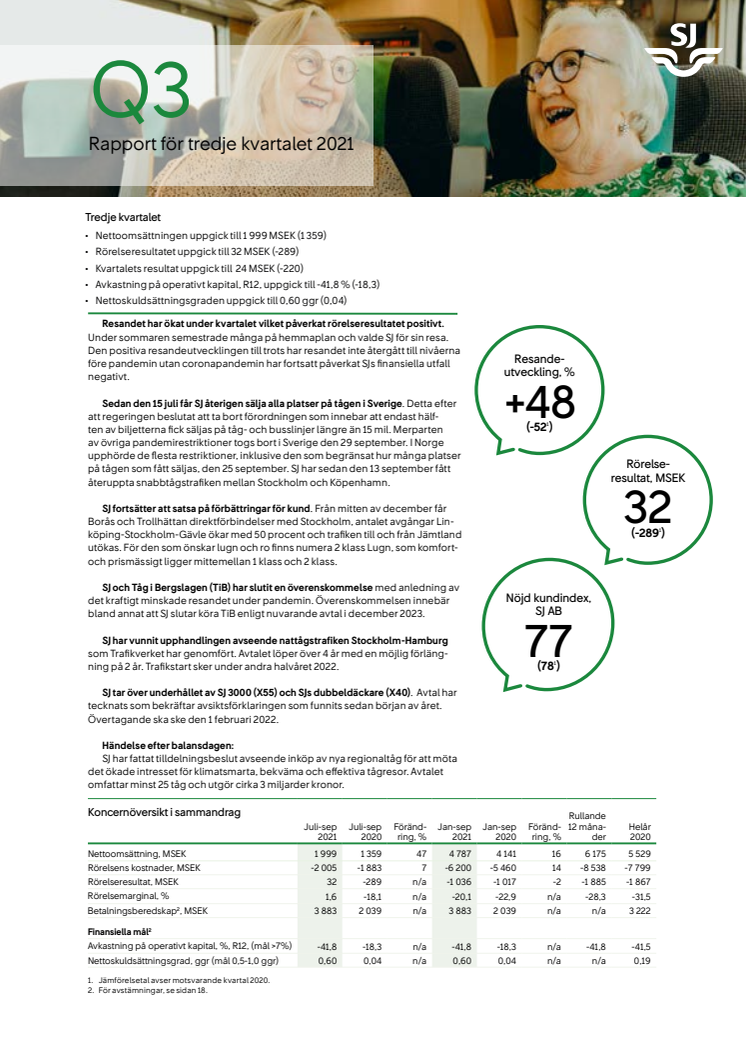 SJ Kvartalsrapport 3 2021