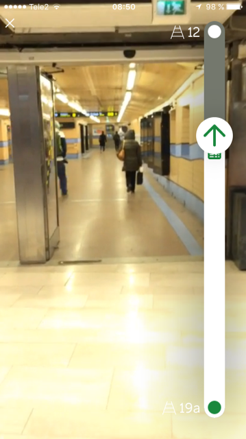 Skärmdump på SJ Labs-app där skärmdumpen illustrerar hur du tar dig till perrong