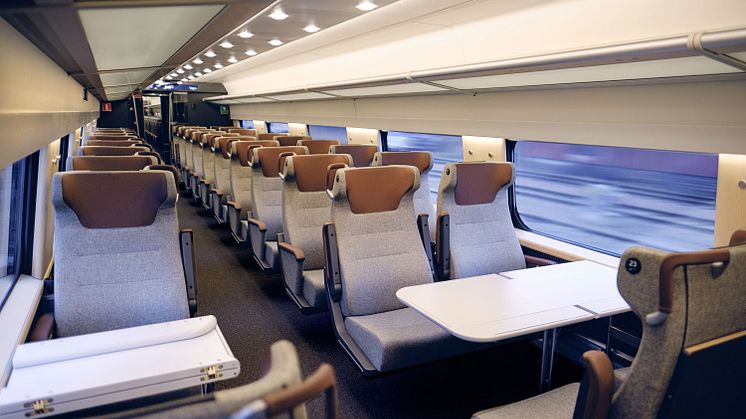 Den nya stolen är speciellt framtagen för X2000. Komforten är högre och utrymmet för benen har förbättrats, samtidigt som varje tågset fått 15 procent fler stolar för att kunna möta efterfrågan.